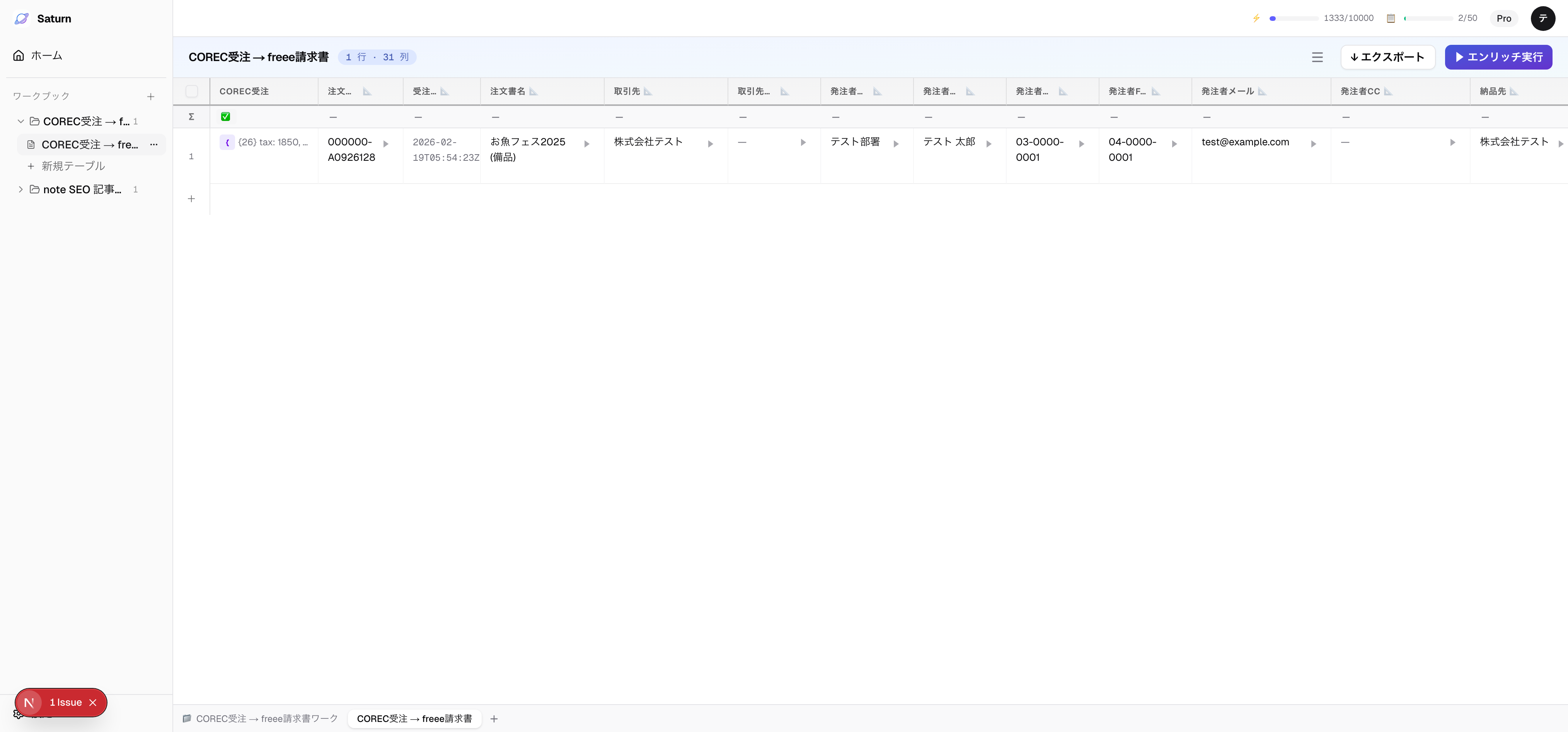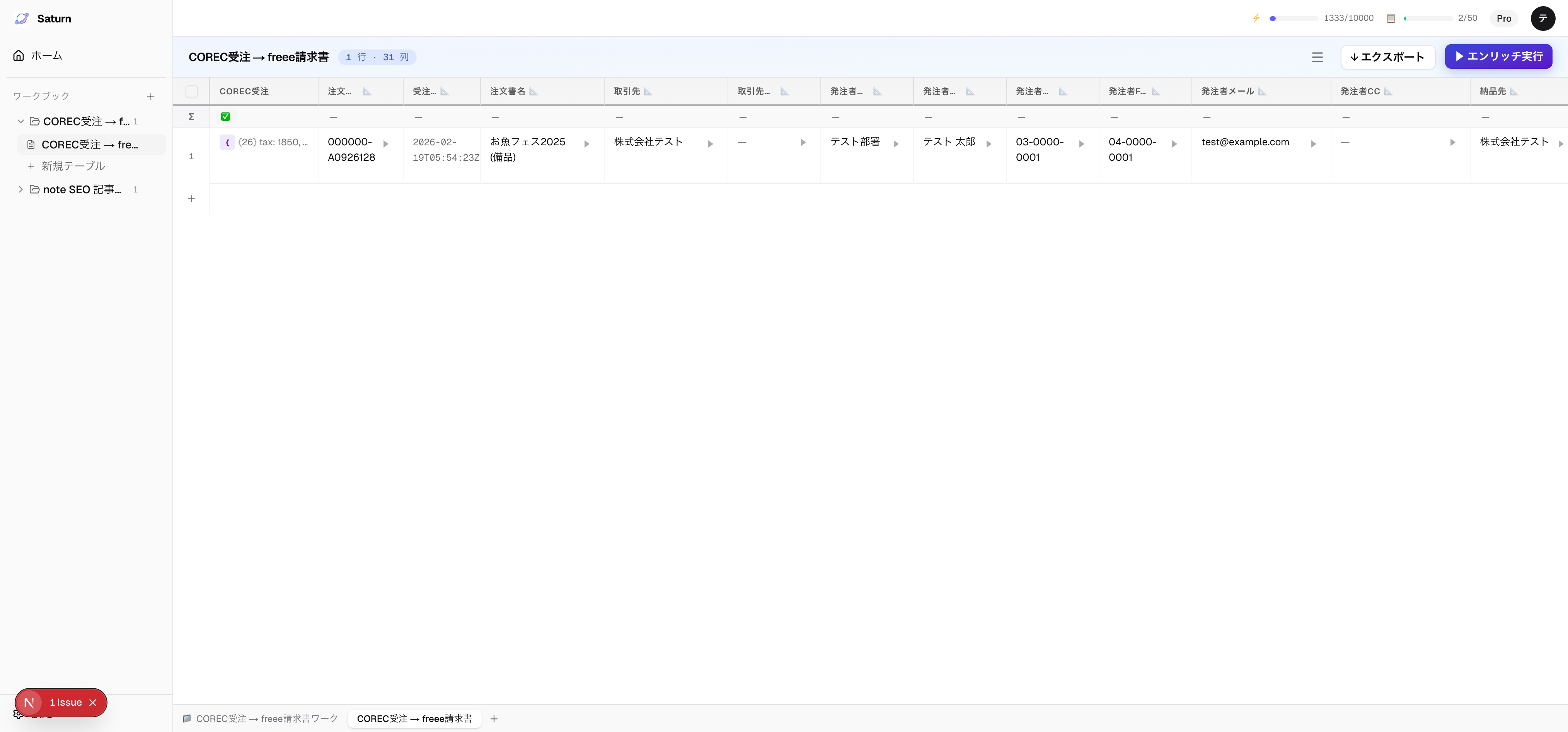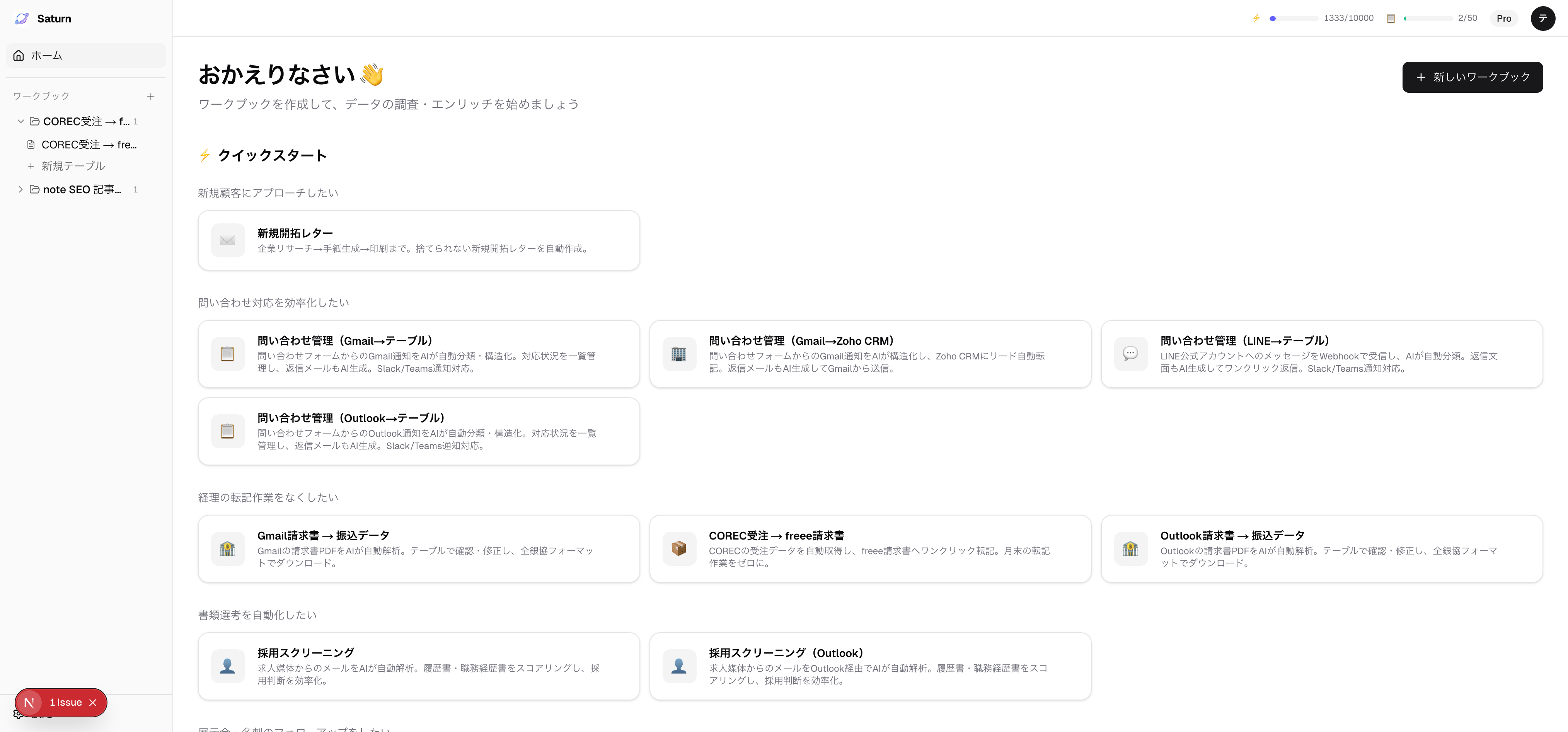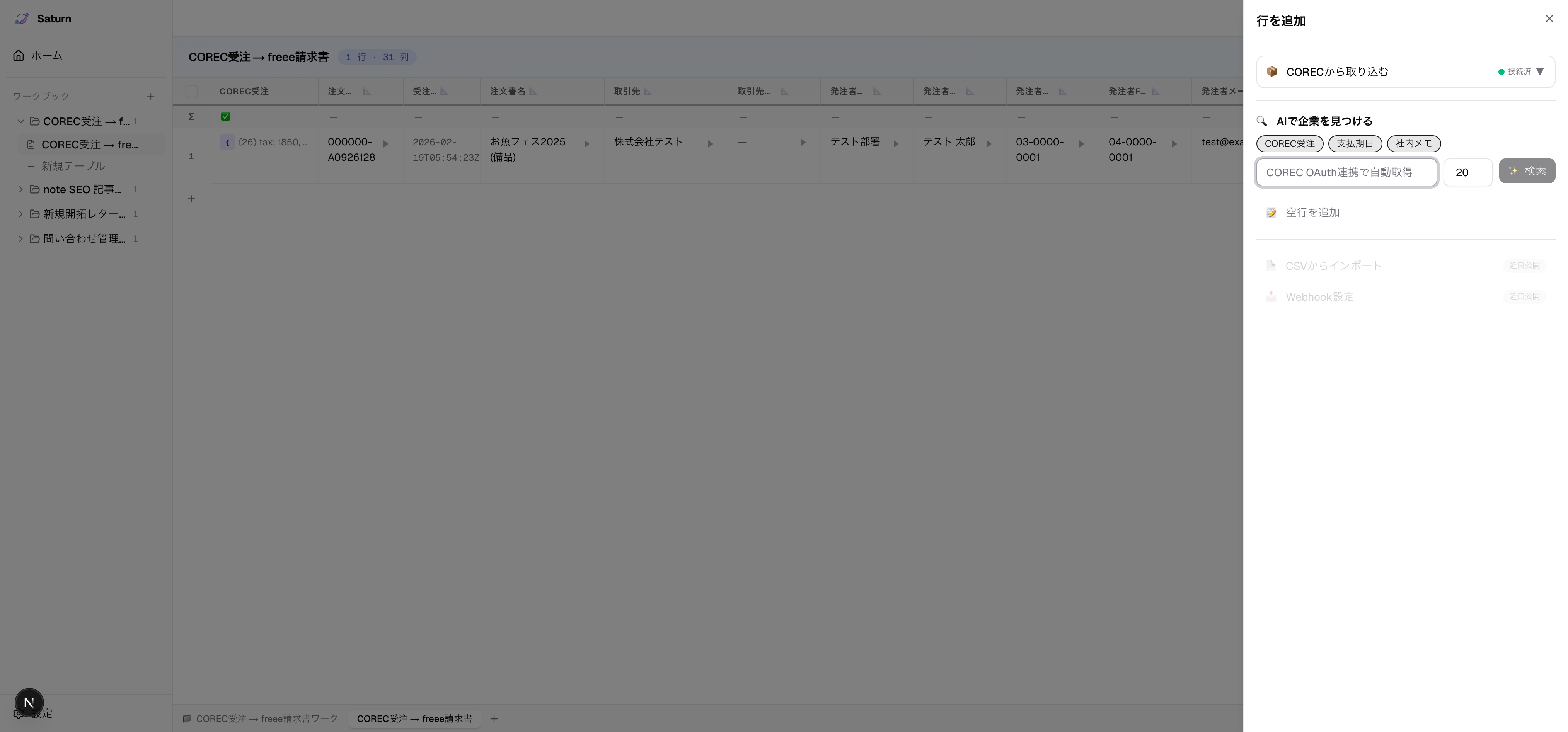 Saturn にログインしてから、最初のワークブックを作り、データを取り込み、AI エンリッチを実行するまでの手順です。
