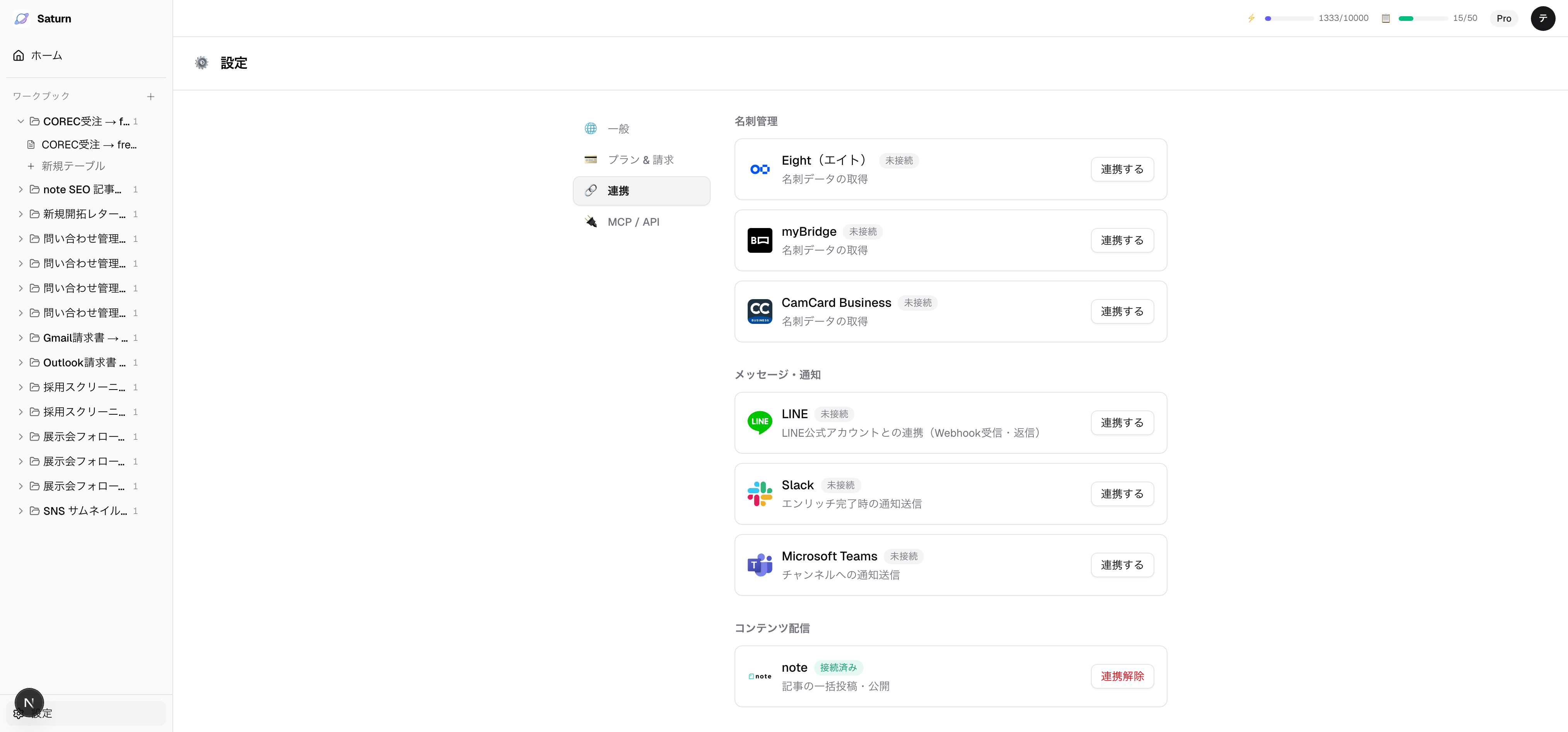 画面左下の ⚙ 設定 を押し、「連携」 タブを開く。