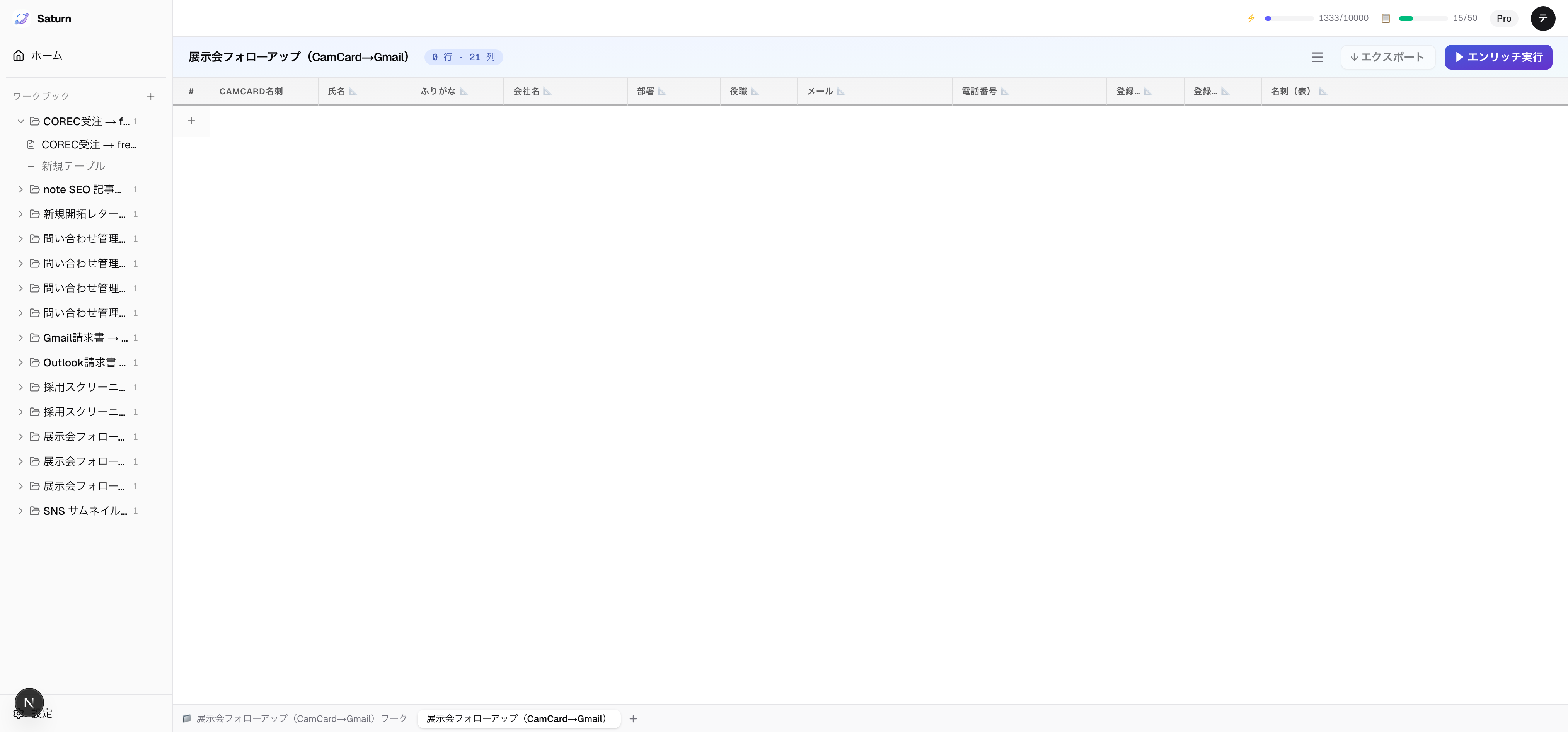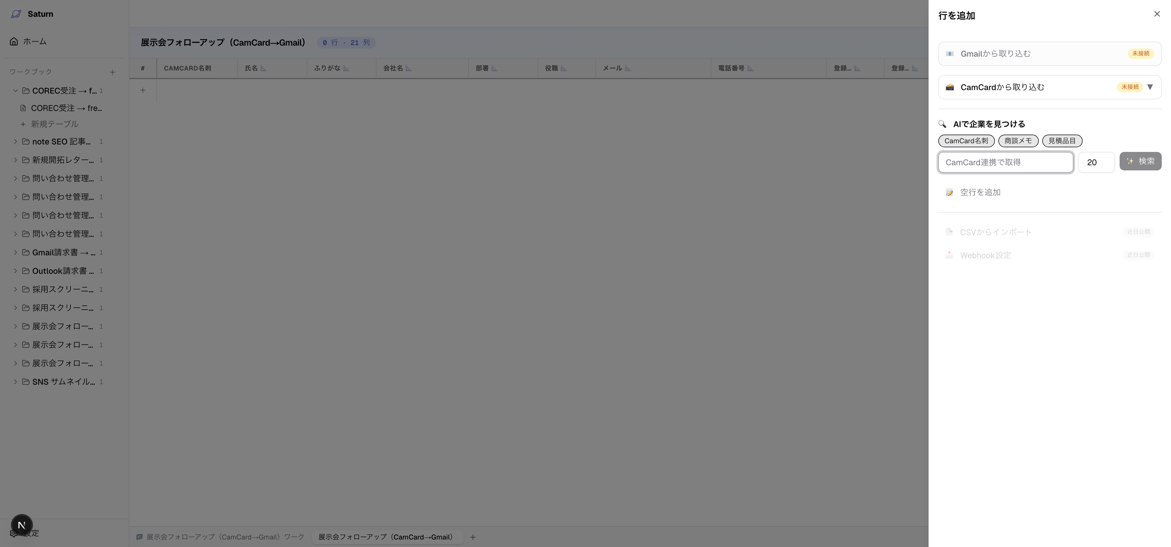 ホーム画面の クイックスタート から 「展示会フォローアップ(CamCard→Gmail)」 を選ぶ。