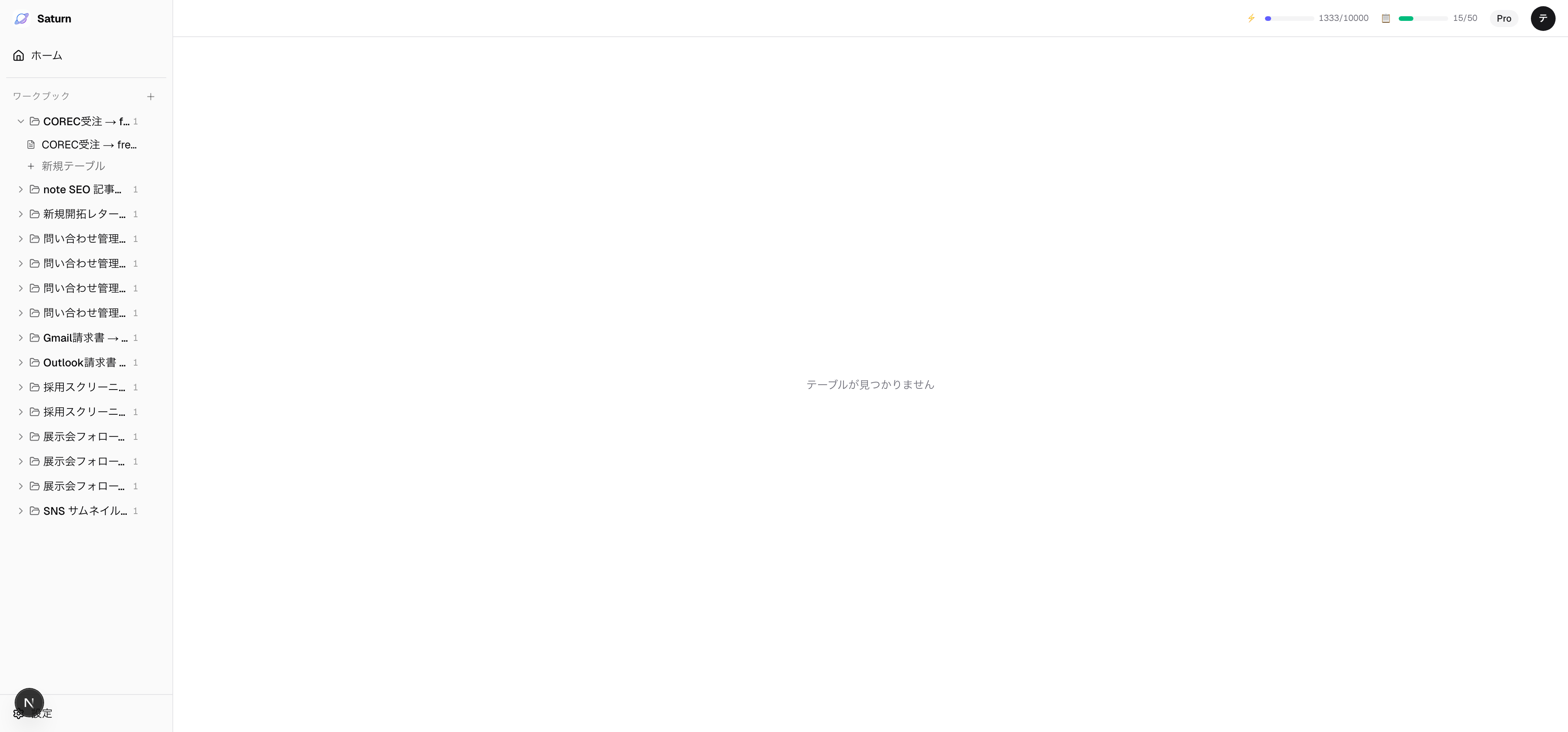 左サイドバーにワークブックが表示される。クリックしてテーブルを開く。