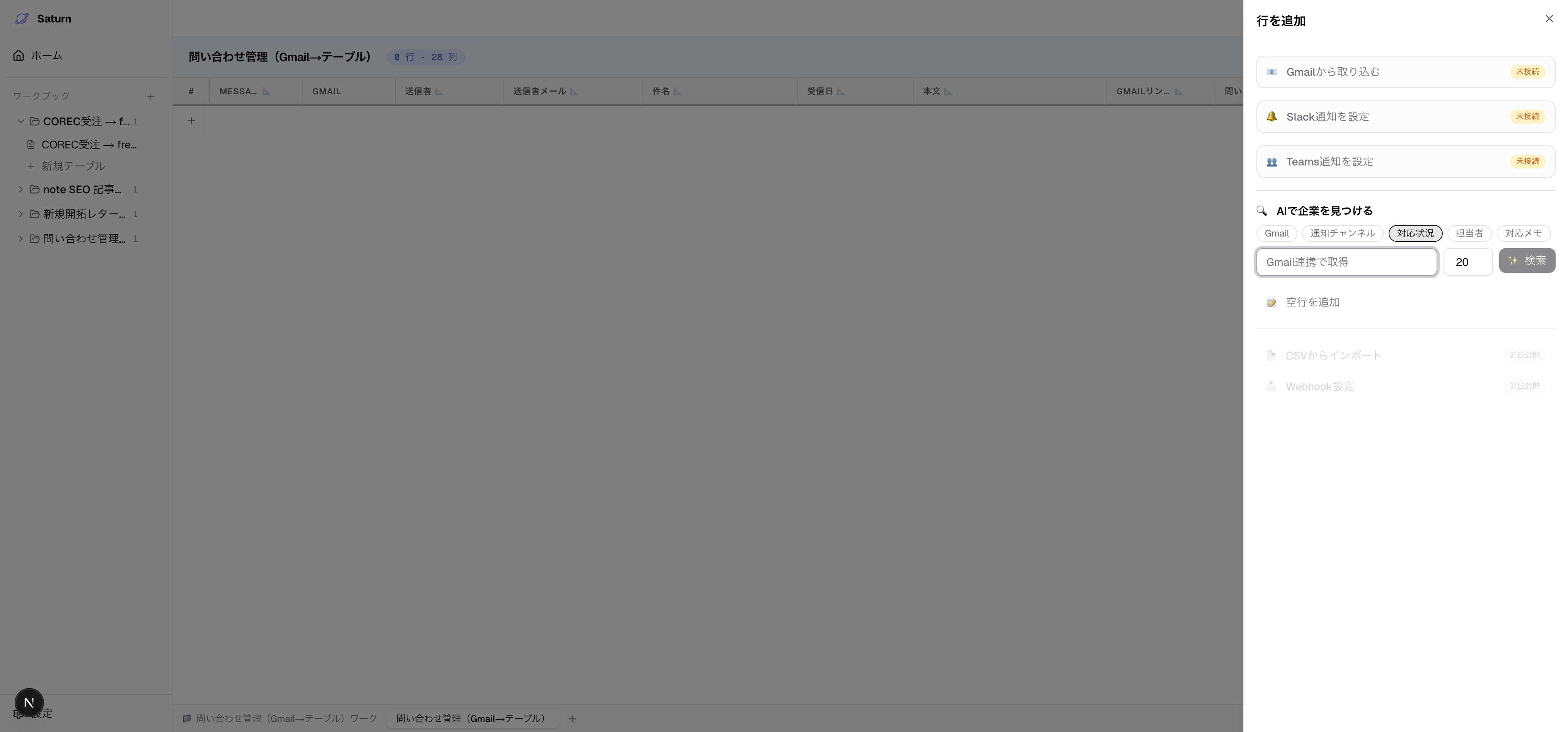 問い合わせ管理(Gmail → テーブル)