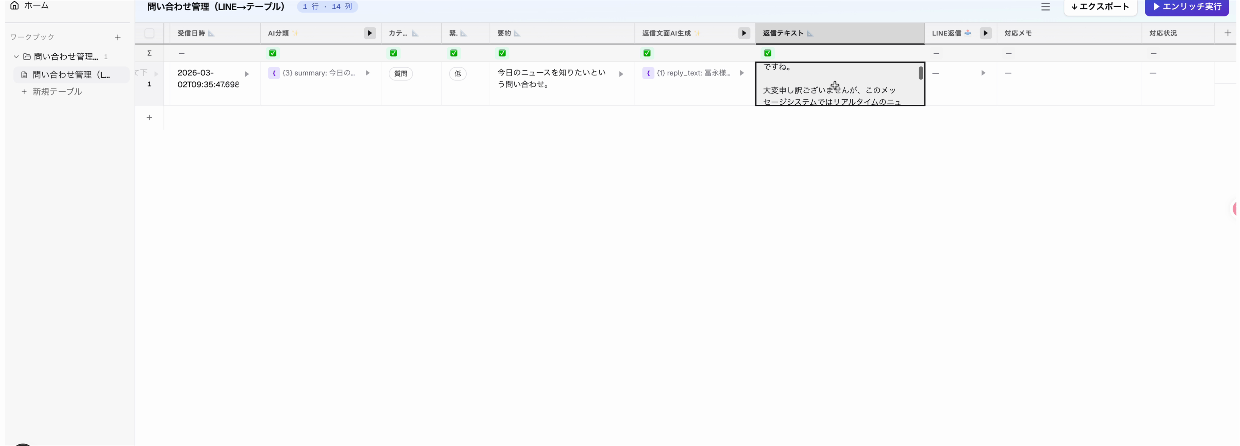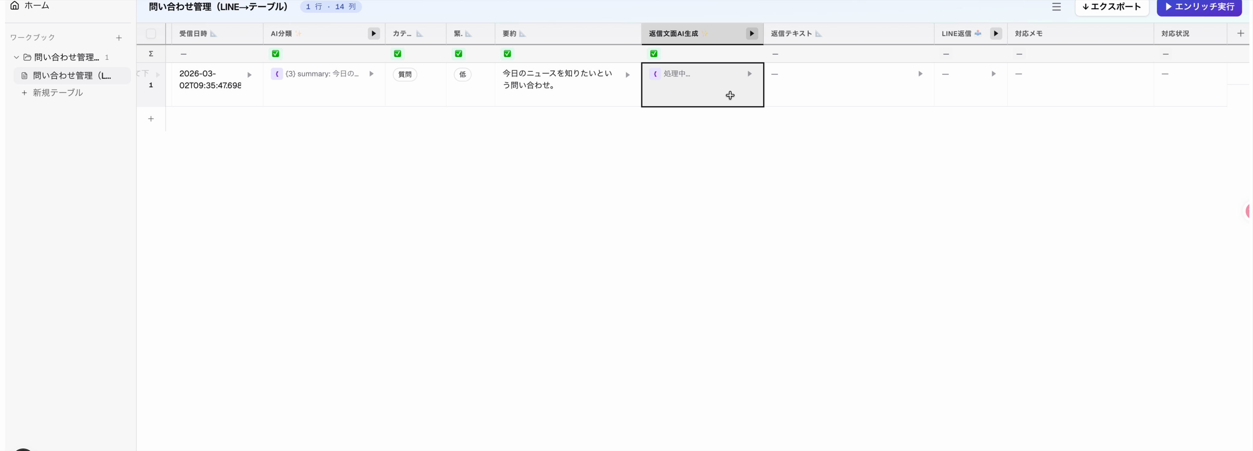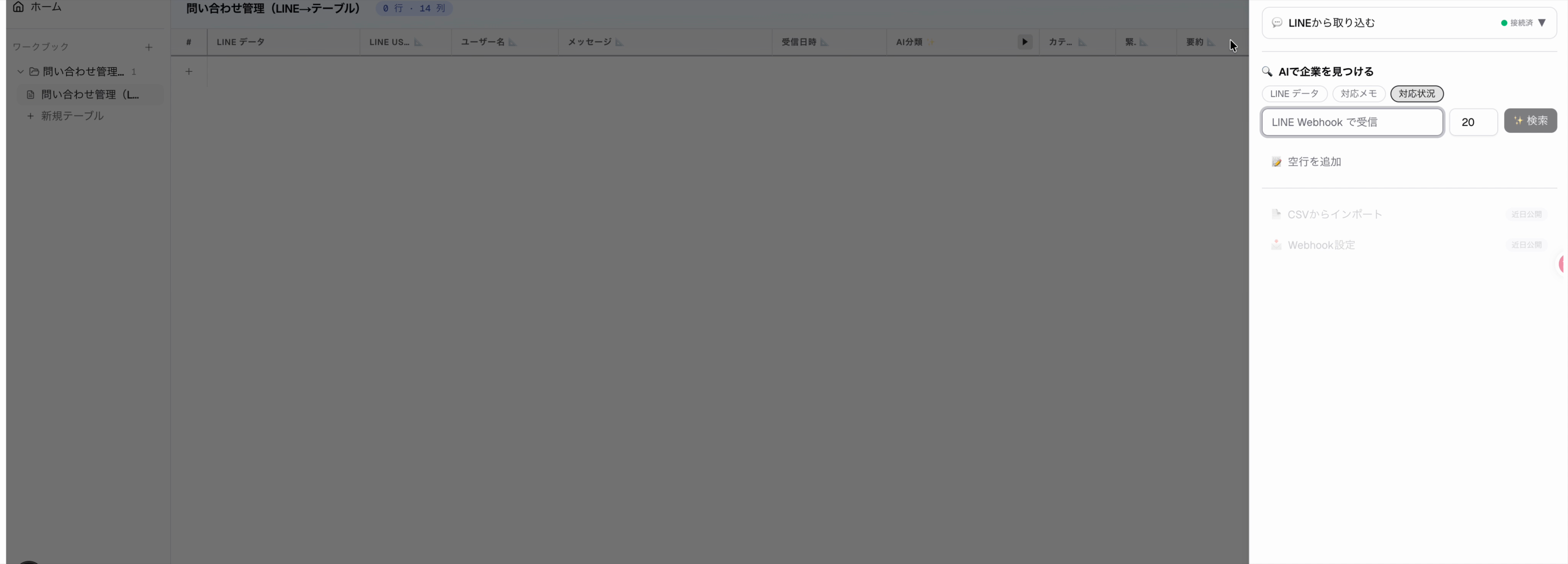 問い合わせ管理(LINE → テーブル)