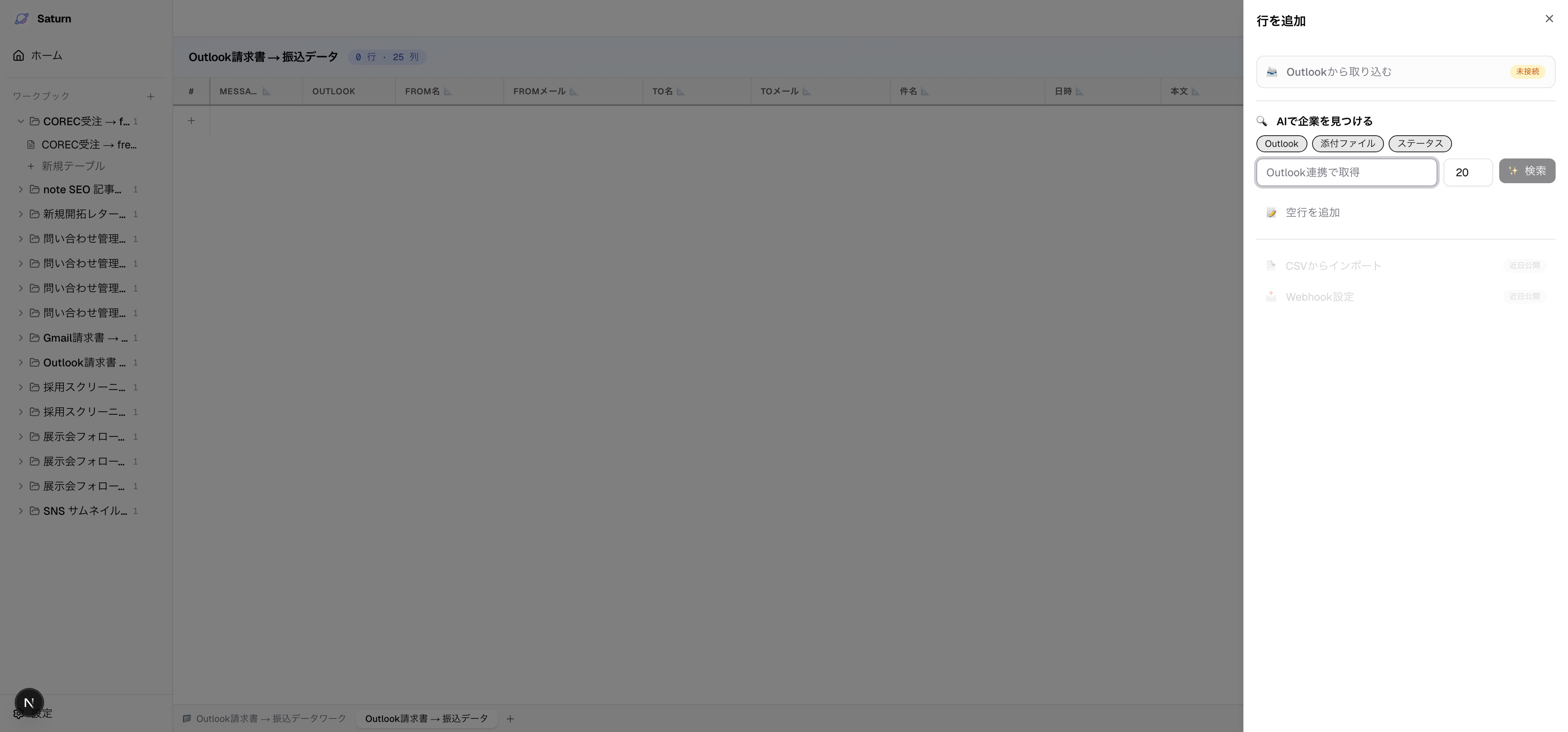 Section titled “請求書メールを取り込む”AI による請求書解析、銀行エンリッチ、全銀フォーマットのエクスポートは Gmail 版と同じです。詳しくは Gmail請求書 → 振込データ を参照してください。